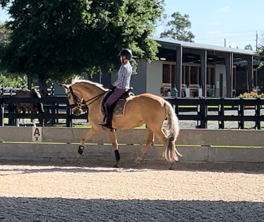 Jacythe AFA is a striking little powerhouse. 3/4 level dressage. Trot work through Intermediare 1. Single changes confirmed. Soft mouth and contact. easy off the leg and seat. No spurs or whip needed. Jacythe is a forward thinking Mare who loves to work. She gives you her everything, everyday. Ground manners are amazing. A complete snuggle bug. Great for body clipping, vet and blacksmith. Loads on bumper pull easy. Fully registered and has had a foal in her younger years.