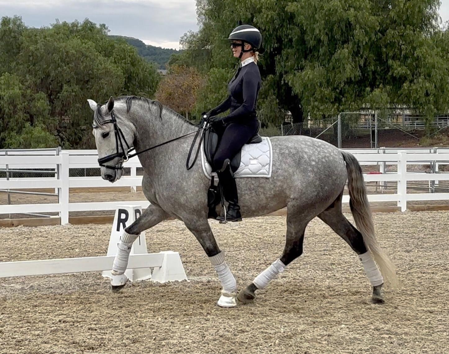 2019, 16 hands, dark grey PRE mare with excellent bloodlines Kabileño VIII - Atlántico PAL with three quality gaits, a super walk, great canter and expressive trot with a nice trot extension. She is very willing, smart, brave, levelheaded and is extremely comfortable to ride with a forward thinking mindset. She is first level schooling second/third level movements and has a good start on a flying change. She is very good on trails, cavalettis, riding in new places and would do well for an amatuer or junior rider in a training program that wants to move up the levels. She is showing good potential to be a FEI horse , is sweet, easy to handle, a barn favorite that’s very personable and connects with her person. Located in Los Angeles area