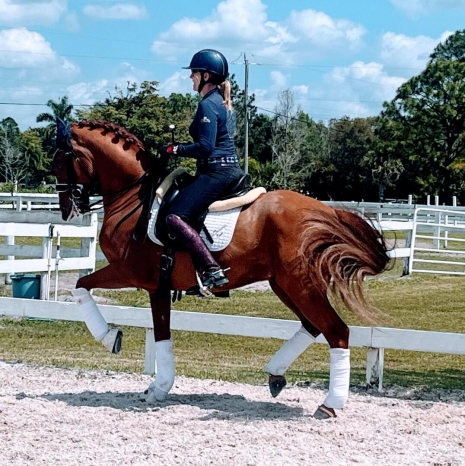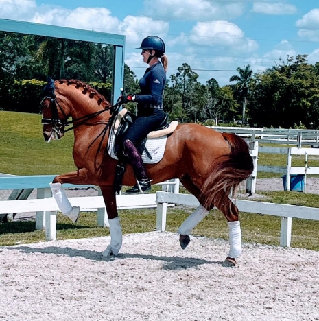 This small but mighty guy is an eye-catching 15.3h Lusitano gelding who has participated in parades, symposiums and exhibitions. At only 8-years-old Maestre is confidently schooling the Grand Prix with three correct, expressive gaits. He is light in the contact and forward going with super flashy, easy flying changes as well as lovely piaffe/passage. This talented gelding will catch the eye of the judges and audiences alike and is perfect for an experienced rider who wants to shine in the show ring all the way up to Grand Prix!