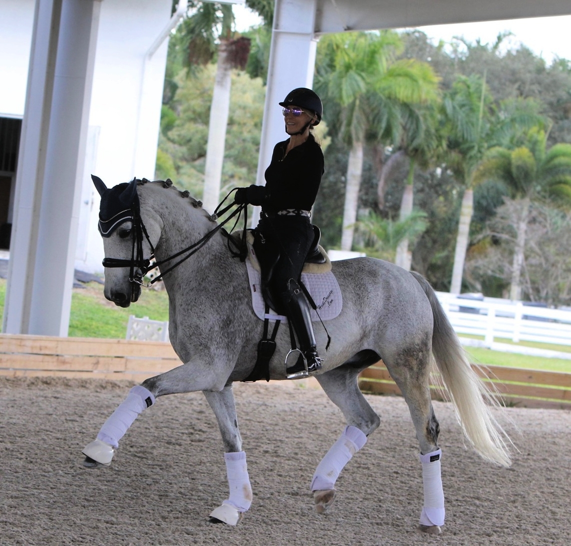 Bon Voyage 39 is an eye catching grey 2015 Westphalian gelding who has successfully shown through PSG and schools all the small tour. He has 3 comfortable, correct and flashy gaits with highlights of fantastic lateral work and easy flying changes. Bon Voyage has a lovely and simple connection to the bridle and is light and easy to ride. He is forward thinking and shows lots of ability to continue moving up the levels. Bon Voyage would be a great horse for an ambitious amateur or JR/YR. This quality horse is a barn favorite, tons of fun to ride and will make someone a fantastic partner.