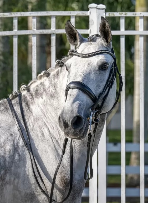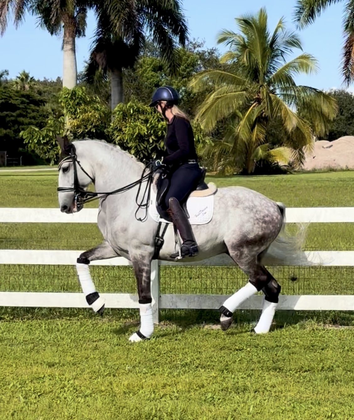 Lidiador Raposo, affectionately known as “Charming,” is a stunning 2015 grey Lusitano gelding schooling most all of the Grand Prix movements. Charming lives up to his name in every way and brings a unique combination of talent, temperament and training.