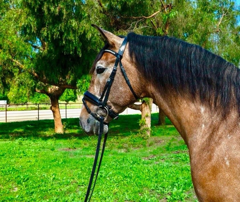 He is 16’1 grey ( currently a striking Buckskin/Roan ) schooling third level movements, easy laterals, nice trot extensions and has a good start on a flying change. He is comfortable, sensible, forward thinking, fun to ride and always wanting to connect with his rider. He is suitable for a professional, amateur or JR/YR. Perfect ground manners, very sweet to be around, great on trails, over cavalettis and excellent with seat lessons. Located in Los Angeles area. Contact Caroline Hoffman 818-3269001 chcarolinehoffman@gmail.com